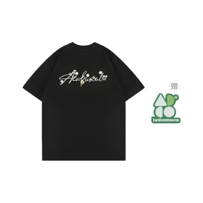 OWOX 美式高街花卉花体刺绣logo宽松休闲凉感透气速干索罗娜面料圆领短袖 T恤 男女同款