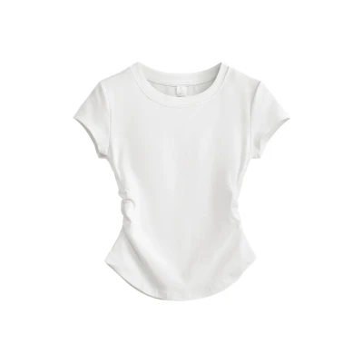 HANDAIWEI 修身收腰弧形下摆纯色短袖 T恤 女款