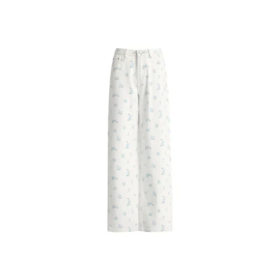 ZAZN 韩系小碎花显瘦直筒牛仔裤 女款 米白色小红花