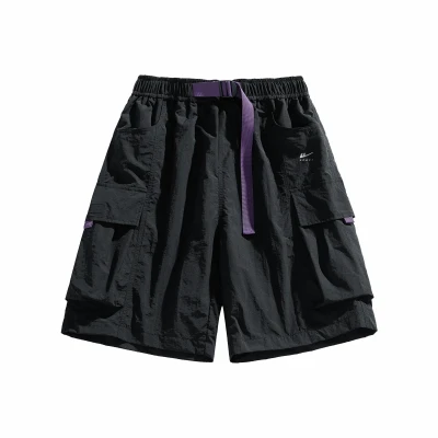 名创优品MINISO 美式高街风潮牌酷帅纯色基础款轻薄宽松透气冰丝凉感五分裤户外休闲运动通勤大口袋微皱垂坠感机能中腰系带工装短裤 男款
