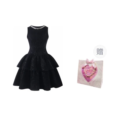 COSYISM 蔻拉小姐 出游季原版重工高品质御姐出片高级感生日可爱公主小香风出片礼服裙绝美细闪钻石领重工千金小黑裙高腰纯色生日小礼裙无袖连衣裙 女款 裙装套装 黑色 礼盒装